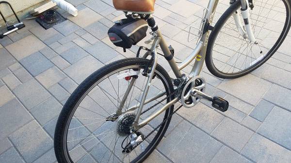 great for riding on paved trails and street. custom tan leather seat and hand grips,