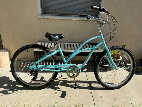 7 Speed Electra Beach Cruiser. Step Thru frame. Powder Blue. 7D. Stellar Like New Condition. Front and rear hand brakes. 7 speed twist grip shifting. Tires and brakes are good. Shifts and stops...