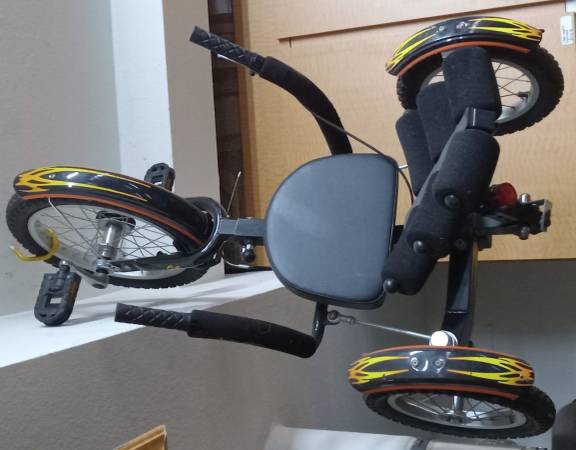 Mobo Mobito adjustable recumbent trike / tricycle. Super cool and fun to ride, steers from rear wheels with side levers, low to the ground for less danger of falls, frame length is easily adjustable for compact storage, transport, and different sized riders.