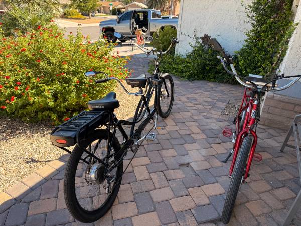 Great tandem Pedego, works great, barely ridden but a few times per year, battery was replaced two years ago 40-50 mile range