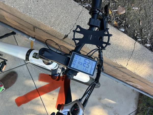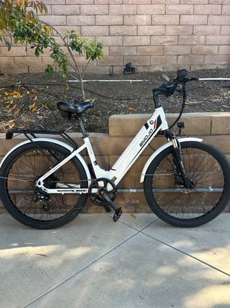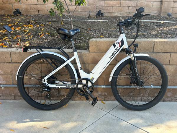 EMOJO Panther Pro 500W Step Through Electric Cruiser Bike - It features a powerful 500-watt electric motor and mechanical brakes for optimum stopping force, despite its light weight. There’s an adjustable front suspension, fully integrated battery, and LED lights for a safe riding. Also included are a rear baggage rack and a backlit LCD screen with five degrees of electric assistance. It has a payload capacity of 250 pounds. Note; in great condition, well maintained, display mount cracked(see red arrow on photo) the only blemish.