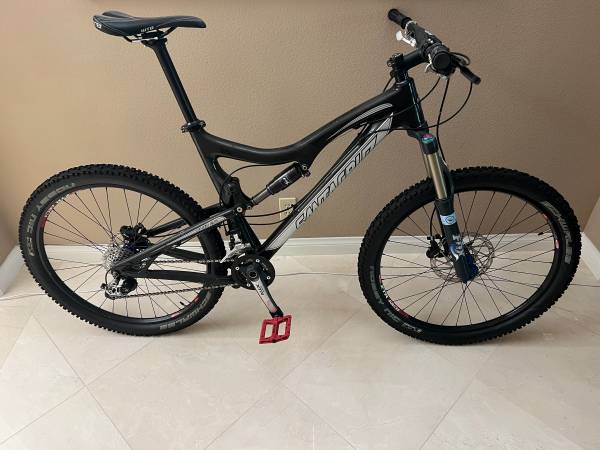 Excellent do-anything all-mountain bike! Lightweight carbon, long travel, and ready for anything/no-excuses steed. Just given a lig100-140mm of adjustable travel up front via the Fox Talas fork, and 140mm of VPP travel out back with the Fox Float RP23, this b of riding you dare. The Scram X-0/XTR/XT 2x9 setup drivetrain shifts crisp through all 18 speeds and all you would need to go to a front derailleur limit screw adjustment. Avid Elixir brakes are there to slow you down in a hurry when the trail gets too fast. Hope P spin true and smooth while the Schwalbe Nobby Nic tires are very near brand new! WTB Saddle is comfortable and the Salsa carb that makes you feel unstoppable (but in a good way). Long climb ahead? Lower the front end with the twist of the fork travel adjust.