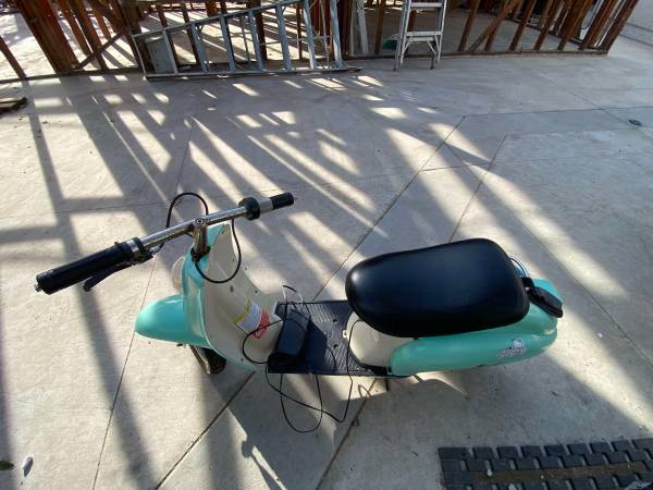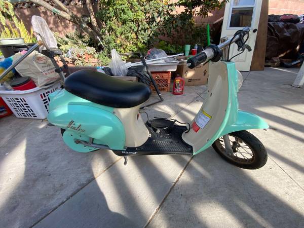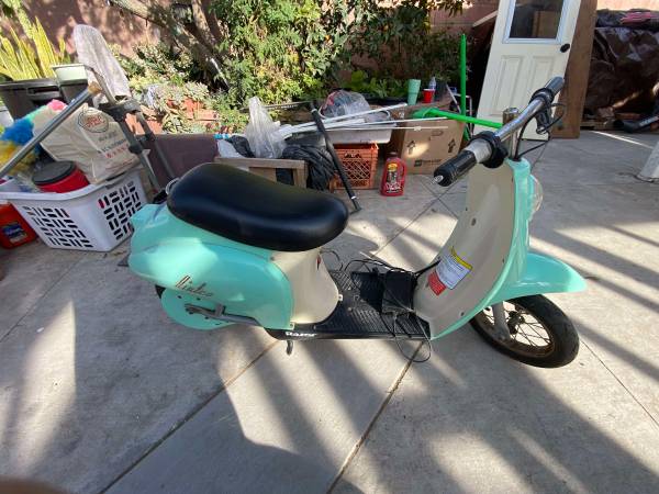 For sale is a Razor Scooter for 6 yrs & older. It is battery charged and operated. Still in good condition. Back tire needs air. Might need a new battery since the charge won't hold for a long ride when it was new. $50. Pick up in Westminster. Thanks for looking.