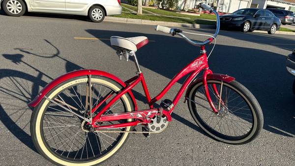 Here it is, barely ridden, a 3 speed and black wide felt rims.
