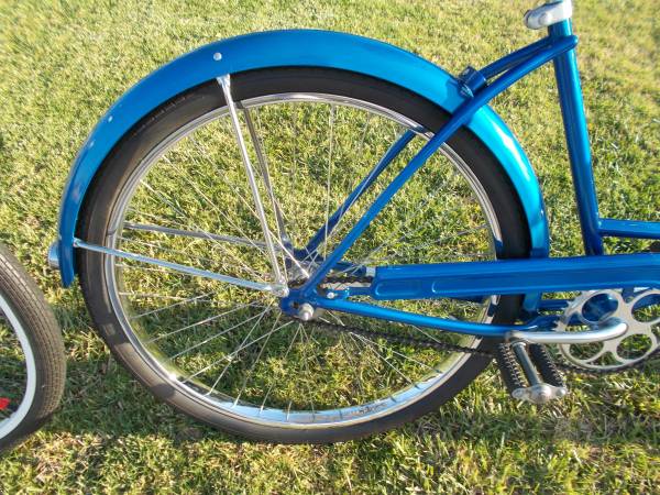 Bike has been powder coated. S 7 rims relaced and chromed. Can't read serial number from new paint. Has large badge. Looks like late 50s or 1960 American text is best 714 655 three6zero2. Will part...