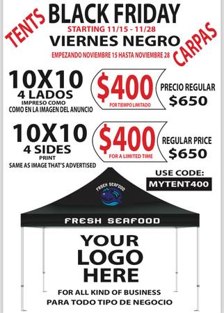 Get your custom 10x10 printed tent (4 sides) for ONLY $400!