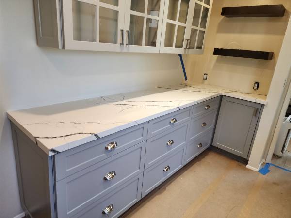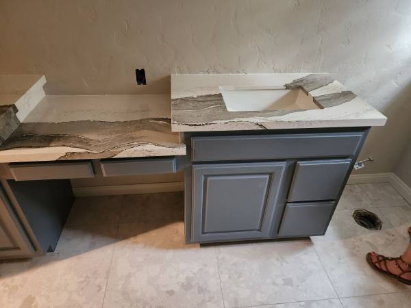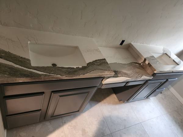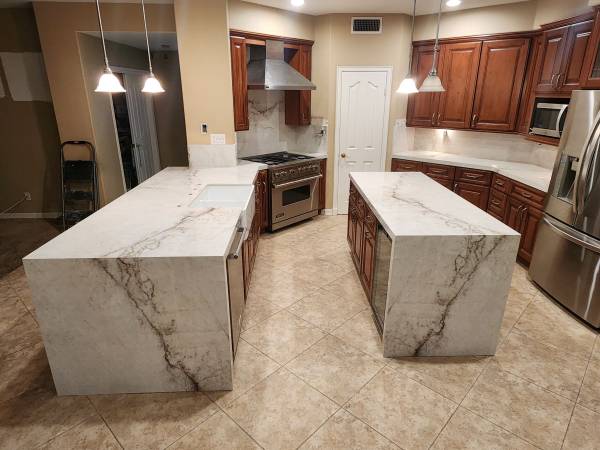 We specialize on kitchen and vanity countertops, shower walls, fireplace and bbq. We do slab or prefab. We work with any type of material Quartz, marble, porcelain, quartzite , granite. phone number...