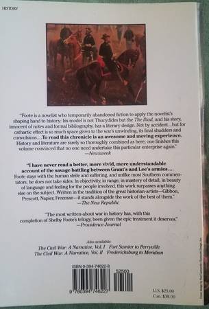 Shelby Foote is a novelist who temporarily abandoned fiction to apply the novelist's shaping hand to history: his model is not Thucydides but The Iliad, and his story, innocent of notes and formal bibliography, has a literary design. Not by accident...but for cathartic effect is so much space given to the war's unwinding, its final shudders and convulsions. To read this chronicle is an awesome and moving experience. History and literature are rarely so thoroughly combined as here, one finishes this volume convinced that no one need undertake this particular enterprise again.