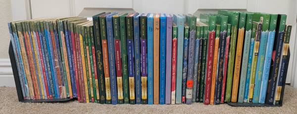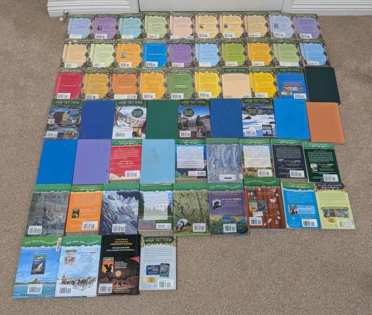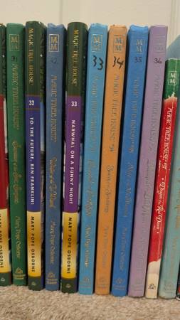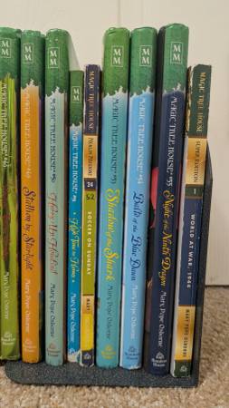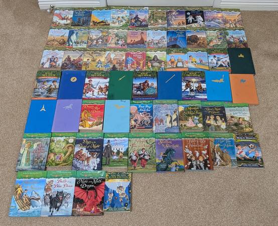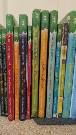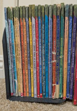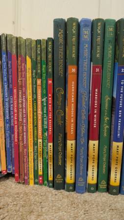 My kids are parting with their Magic Treehouse books. They took good care of them. We loved reading them together, & they re-read them alone a few times.