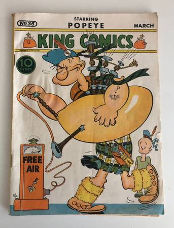The product is a vintage comic book featuring the character Popeye, published by King Comics. This single issue comic is in English language and has a colorful style typical of US Comics. It is not signed or personalized, making it a valuable collectible item for fans of classic comics, especially those interested in the comedic antics of Popeye.
