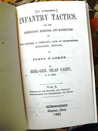 Casey's Infantry Tactics. There's a note from the previous owner parents. Apparently this book, was a gift to a son who had just joined the armed services. Book is in Like New Condition. No Dust...