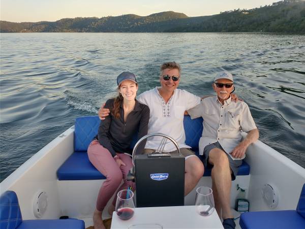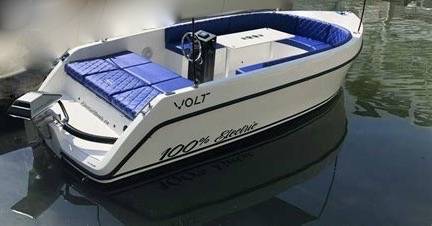 I'm selling my electric cruising boat, the VOLT 180 with pod propulsion and 3 lithium batteries. This fully electric sporty looking boat offers luxurious comfort with leatherlike studded cushioned seating with back rests surrounding a corian table with holders for wine glasses, bottles and drinks and a bimini top for shade. The boat provides an incredibly smooth eco-friendly ride running 3 to 6 knots for gentle cruising. This boat directly contributes to zero pollution, zero emission and a noiseless environment allowing for a peaceful cruise on the water.