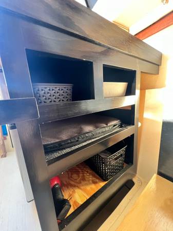 Perfect setup for work reboatly, or a live-aboard, or just a perfect size coastal cruiser with fun space to hang out on these long summer nights.