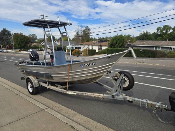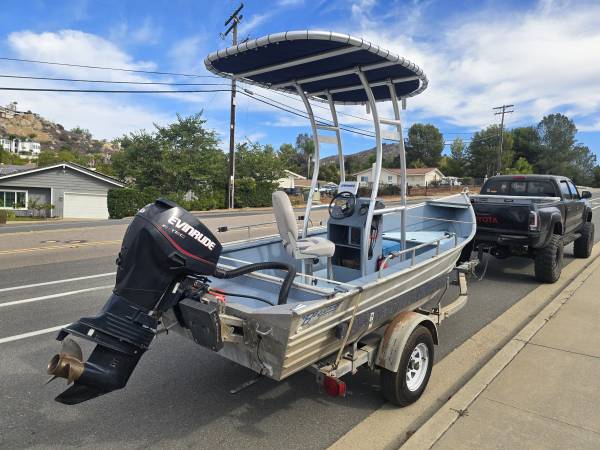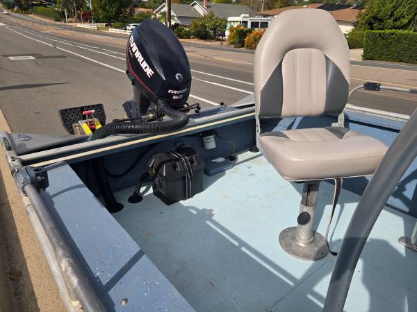 1989 Bayrunner 16' Center Console powered by a 2006 Evinrude ETec 50hp EFI 2 Stroke Outboard, ready for the water, runs and drives great, everything it has works, needs nothing, gorgeous T Top, Lowrance fishfinder, power trim and tilt, swivel Captains Chair, 7 pole holders and rocket launchers, 2 5 gallon fuel tanks, ladder, Navigation and Anchor lights, boat cover, kicker bracket, 2 life jackets, throwable flotation, fire extinguisher, current registration, boat title in hand, 1988 Calkins trailer is very clean and uses a 2" ball, flat four wiring plug, tires and wheels are near new, trailer axle bearings recently serviced, trailer's spare tire/wheel flips to aid in beach launches, Trailer's California Permanent Registration Card and Title Transfer form in hand, $7,250 make an offer trades plus cash possible, located in El Cajon 92019, call or text 619 787 7 nine 87 Rod.