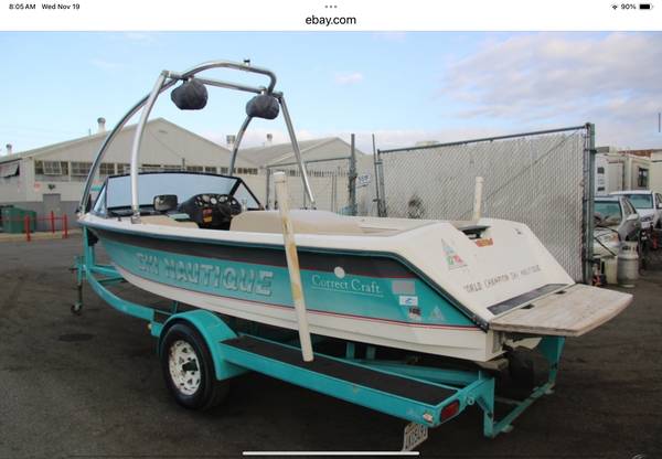1991 Natique Ski Correct Craft With Trailer 19ft Automatic , very nice boat , very low hr. 161 hours, clean in and out, does have a problem, the propeller and the shaft it’s bent see the pictures,ease to fix other than that, it’s a beautiful boat, we got a clean title for a boat and clean title for the trailer