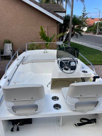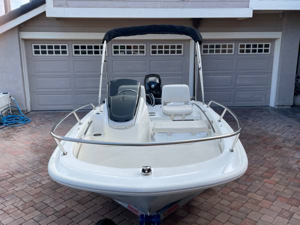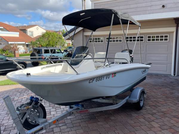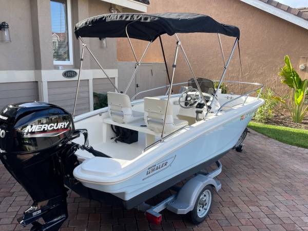 2022 13’ Boston Whaler Sport - like new - used 4 times and always stored inside 40 hp Mercury, Galv trailer, light blue hull, bow rail, Bimini, cooler with cushion, bow cushion, helm seats, bottom...