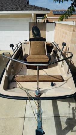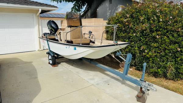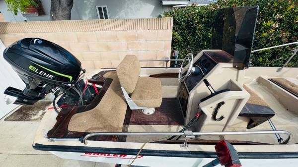 1974 Boston Whaler 13.5 ft. Powered with zero emissions Lehr 25hp propane outboard, less than 20 hours on engine. Set up as center console. Starts right up every time, will do 30-35mph. Ready to use today. Have too many boats, must sale. Comes with trailer. Title for boat and trailer in hand. Trailer will need new lights or maybe rewire the current lights. Tows nicely. Currently located in Fountain Valley, may move to my yard in Signal Hill.