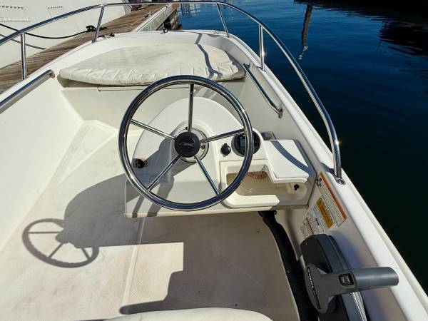 2010 Boston Whaler 130 Super Sport. 2025 Yamaha 40HP Four Stroke (less than 10 hours) with new controls, gauges, etc, and WARRANTY through August 2030. Gel coat is in excellent condition, soft goods are Ok. Bottom Paint was done recently. Easy to see in Newport Beach.