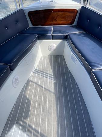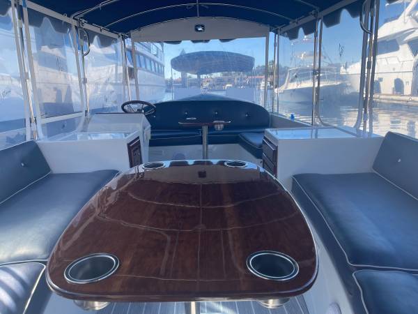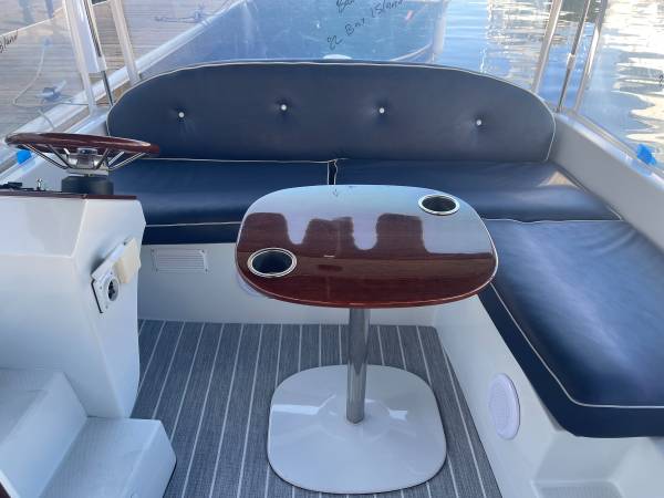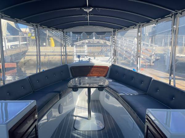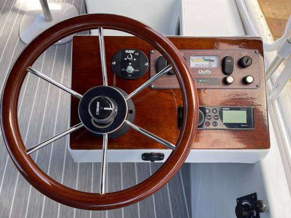 This 2015 Duffy Bay Island 22 has been fully restored and is ready for the water. It features a polished and buffed hull, a complete haul-out with fresh bottom paint, a brand-new Captain’s Navy surrey top with white piping, new windows, new marine vinyl flooring, and beautifully refinished woodwork. The 48V system has been fully tested for reliable performance.