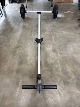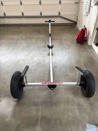 Custom order dolly made for up to 12’ inflatable soft or RIB boat or other small boats with similar length. The boat and Outboard seen in the photos are already sold. Keywords: Dolly, Trailer.