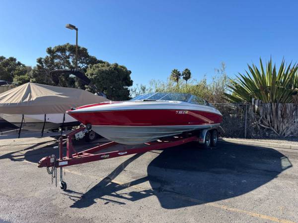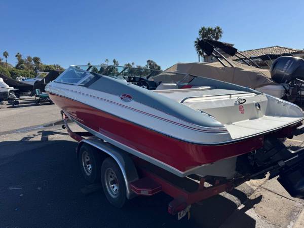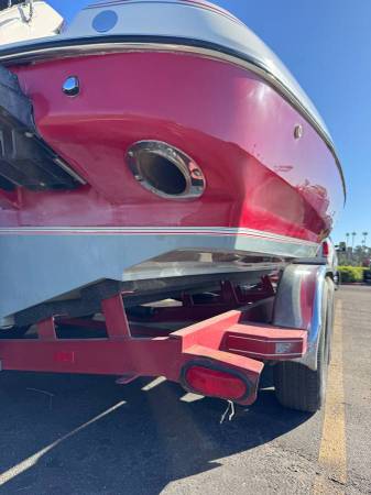 1990 Arriva 2450 Factory High Performance 454. It’s powered by a low-hour (under 300 hrs) MerCruiser 454 paired with a Bravo One outdrive. The engine, transom assembly, outdrive, and trailer are all in VERY good condition.