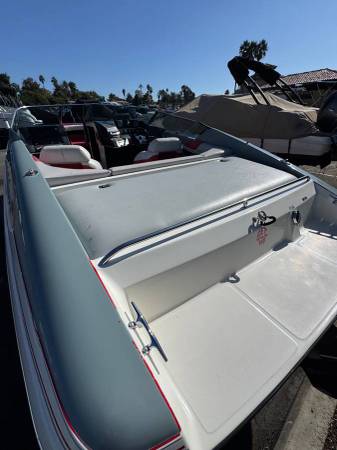 The exterior has a few light scratches and some oxidation in the gel coat, but the hull and transom are solid and dry. The interior is original 1990 upholstery — some of the seams have come apart, but with a little patch work you could still get several good seasons out of it before considering a full re-do. The boat also has a great stereo setup with two JBL amps and would make an excellent river or lake boat. It’s too iconic and too nice to part out — I’d really love to see boat go to a good home!!!