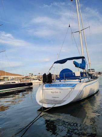Must see to fully appreciate this gorgeous boat. Yanmar 77 horsepower turbo diesel, new countertops, new heads, beautifully refinished teak and holly floors, roomy “garage” for your dinghy, large swim step, assortment of great sails, and much more. Easy to single hand. The 55 foot mooring it is on is also available for purchase for $60,000.00. You then pay the City of Newport a monthly fee of only $183.00. Sure beats slip fees!