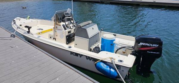 :1997 17ft key west 1720 sportsman with a 60hp mercury 4 stroke on Pacific Galvanized trailer- it has 3 12v batteries one for electronics one for bilge and bait pump and one for starting battery also has a 24v min kota trolling motor it has a 14g and 22g bait tanks (2 separate tanks)Live well/ a fish finder and Ai 8-1-23 chart plotter/Blue Tooth fusion stereo syst/2 way radio/ new t top/new Bow seat/ motor just serviced $1,800 w reciepts