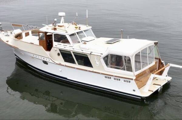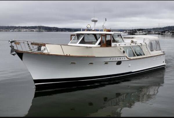This beautiful power boat kept classic was built by Philbrooks shipyard in B, C. Designed by William Garden and constructed of epoxy coated double planked mahogany epoxied between layers an ironwood keel. Her proud heritage is reflected in the plans that are at Mystic seaport Connecticut.