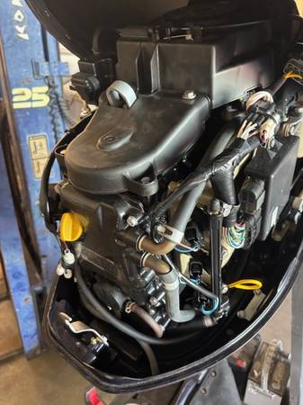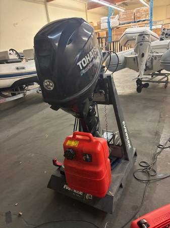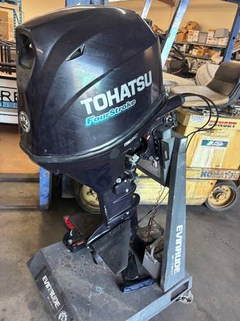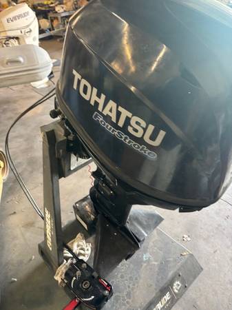 Tohatsu 30 hp 4 stroke EFI outboard. This motor is a tiller conversion to a remote outboard (no tiller with motor). The motor comes with the controller and two cables. The motor is a rope pull motor so no electric start and is a manual trim so no power tilt. It is cost prohibitive to try and add either of those items. The motor has very low hours and is very clean and runs well. It includes the prop.