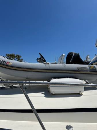 2012 Zodiac Rib model 340 with Mercury 20 horsepower outboard. Electric and pull start, trim tabs, approx 2 year old battery, fuel tank and seat. Fair condition original owner