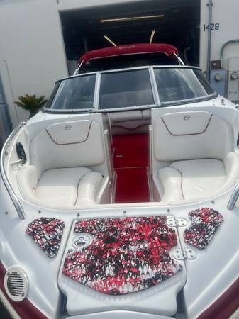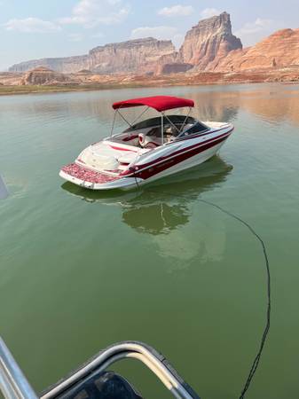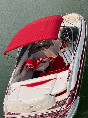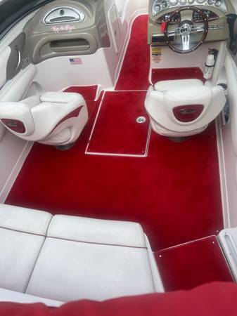 220 Crownline boat. 22’ long 105 hrs. New snap in carpet. 5.0 MerCruset motor and outdrive. Motor cover reupholstered. S.S. 5 blade prop. Seats 10 people Bolster swivel front seats 2 batteries with...