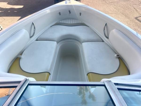 Caravelle open bow. The hull is a deep V type with a great floorplan. The 4.3L V6 engine will need to have a new short block, Connecting rod for piston broke. We were going to replace motor, but we are so busy that we decided to pass on the savings and sell the boat as is. The boat has only been used in fresh water, and the hull is in great shape. The boat comes with a nice trailer with three new tires.