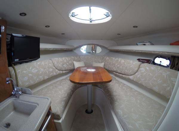 Spacious wrap-around seating with a removable cockpit table — perfect for entertaining