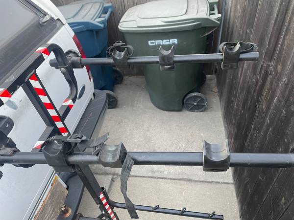 Heavy duty hitch mount 3 bike carrier for 2 inch receiver hitch, good condition, missing a couple of tie down straps ( I just use bungees ), $50. No email or text, call show contact info