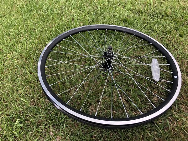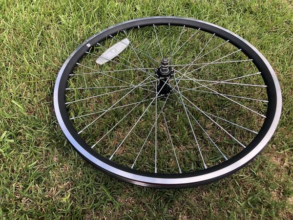 For Sale here is a brand new 24" Retrospec Dart model Mountain/Hybrid Bike front wheel assembly. I am a big fan of Retrospec brand bicycles for the quality and they make great platforms for my eBike conversions. This was taken off a new bike that I built and replaced it with a 48 volt 500 watt front wheel drive assembly. I sold the bike recently. The bike had V brakes so no front brake type hub. It's finished with the factory black finish with polished sidewalls on the rim. This is a standard size width rim for a 24 x 1.95 to 24 x 2.10 tire. I build quite a few electric bike conversions and end up with a small pile of brand new take off parts, wheel assemblies, new Blackwell tires (I like whitewall tires) and often switch out handlebars and related parts. I am starting to list these new parts at good prices so I can get rid of a few things. I also have quite a few brand new 26" & 20" front wheel assemblies as well as new tire sets that I will be listing soon. Thanks for looking.