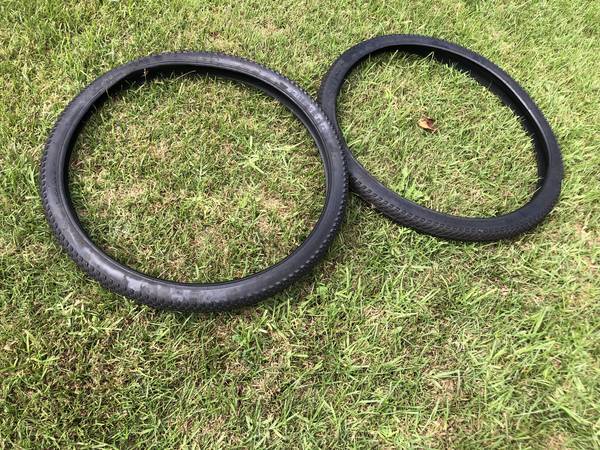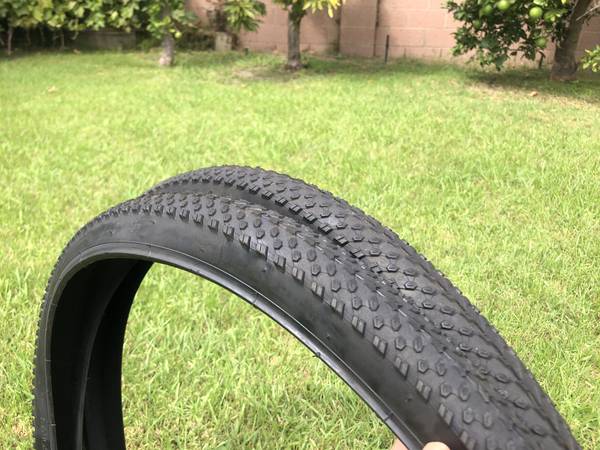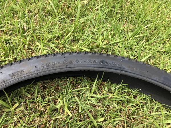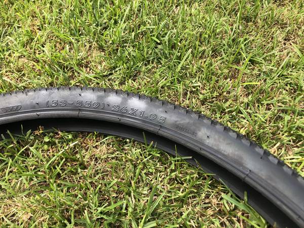 For Sale here is a brand new pair of 26" Mountain Bike tires. These were taken off a new electric bike conversion that I built and wanted whitewall tires on it instead. The bike was a Cubsala 26" BMX bicycle. They still have all the new molding teats and markings. These are marked 53-559 & 26 X 1.95 size for standard size 26" bicycle rims. I build quite a few electric bike conversions and end up with a small pile of brand new take off parts, wheel assemblies, new Blackwell tires (I like whitewall tires) and often switch out handlebars and related parts. I am starting to list these new parts at good prices so I can get rid of a few things. I also have quite a few brand new 24" & 20" front wheel assemblies as well as new tire sets that I will be listing soon. Thanks for looking.