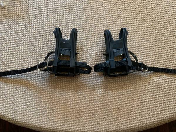 ***Brand NEW*** 2 pairs available Safety strap on MTB or Commuter bike pedals with safety reflectors Came with my my new Canyon road bike. John