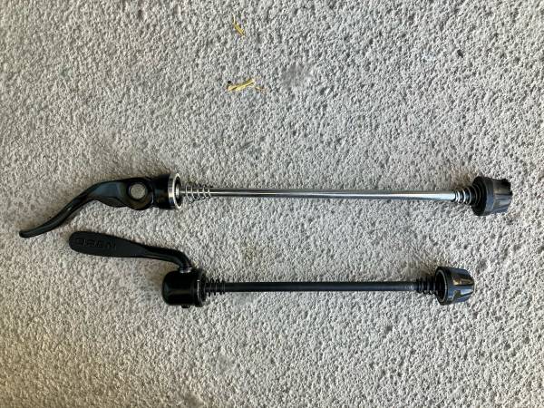 Front and rear quick release skewers. They’re sturdy and has all the hardwares. Asking $5 for each set. Pickup in Irvine.