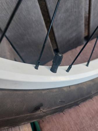 Wheel is straight and true. Spins smooth and quiet. White rim and black hub/spokes. Pickup only. Text me if you are interested.