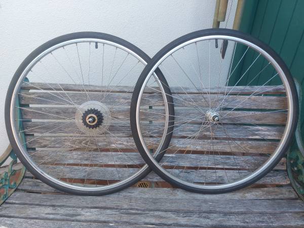 Are you looking for a vintage set of rim brake wheels for you retro modern bike build? Here they are! Spin great and are straight and true. Pickup only. Price is firm. Text me if you are interested.