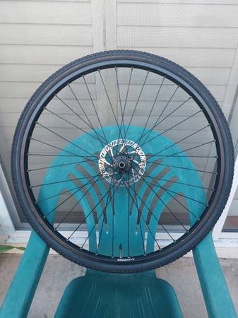 Includes wheel AND tire AND tube AND ROTOR. Spins straight and true. Presta valve. Pickup only. Text me if you are interested. Thanks for looking.