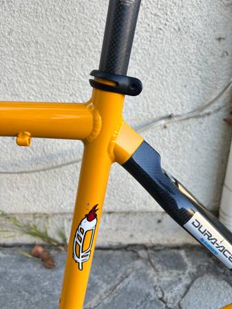 Road Bike RUSS DANNY 51.5cm Small Size with Chris King Headset and Dura ace Bottom bracelet, Include Easton Carbon Seatpost, Excellent Condition, Very clean. Nice Color, See pictures.