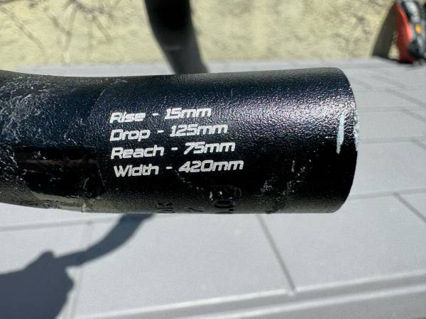 Specialized road bike alloy handlebars. Good condition. 15mm rise 125mm drop 75mm reach 420mm width