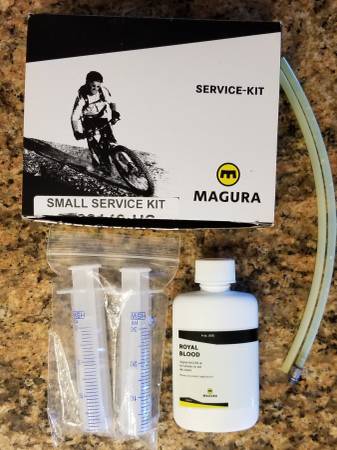 Service/bleed kits and spare parts for installing and changing Royal Blood mineral oil hydraulic fluids in Magura disc brakes