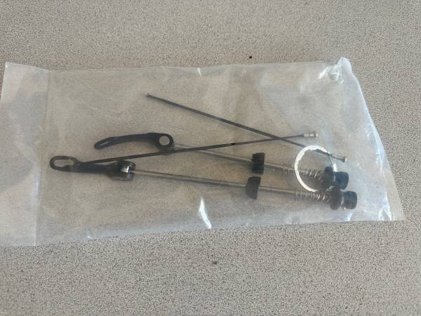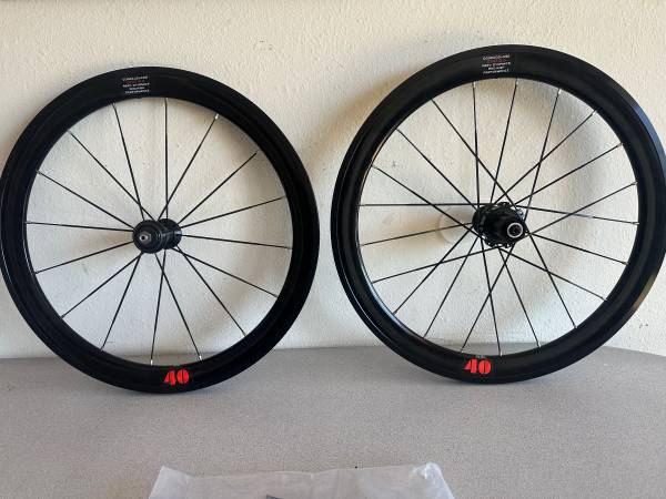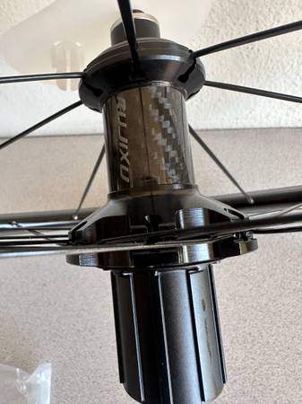 Aluminum rims with carbon hubs. Comes with the quick releases and extra spokes, see pics.