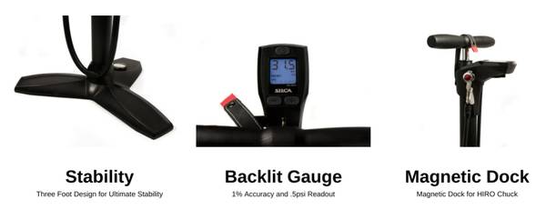 A high mount digital gauge giving .5psi readouts and 1% accuracy. This is the one pump to rule all others. Fat bikes to track tubulars and everything in between are all covered in this one pump.
