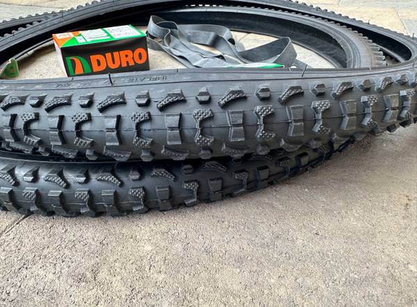New DURO Bike Tires 26 X 1.75 Black/ Black Tubes + Rim Strip Bicycle Mountain Mtb All Terrain Pricing: 2 tires + 2 tubes + 2 rims strips = $50 2 tires + 2 tubes = $48 2 tires = $42 1 tire = $27 2...