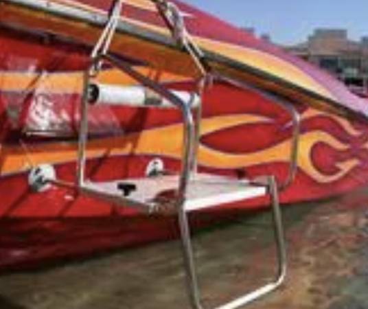 Slide Anchor boarding platform, Stainless steel & Aluminum. Makes it easy to board your boat from the side, while at anchor or beached. This platform is gently used, in good condition, comes...