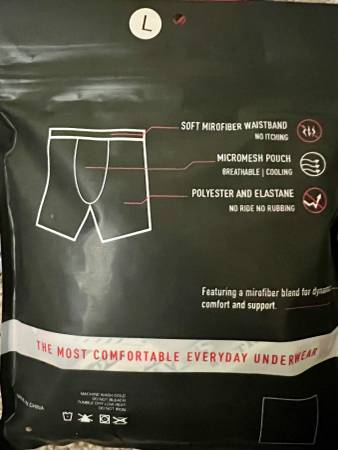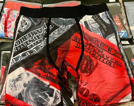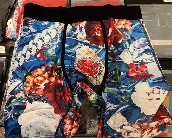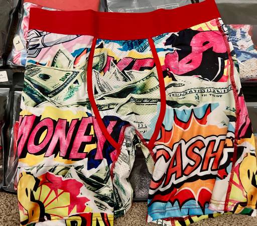 New, in original packages ▪︎ Vibrant mens (large) boxer briefs with money and comic graphics ▪︎ Soft, breathable fabric that ensures comfort and a perfect fit for all body types ▪︎ 90/10% polyester-elastane ▪︎ Elastic waistband ▪︎ Tag free ▪︎ Moisture wicking ▪︎ Odor control ▪︎ Brand: Wear Your Life (Retails for $19.49 each) ★ $7 EACH OR ALL FOR $60 ▪︎ Cash Only ▪︎ Pick up in Aliso Viejo